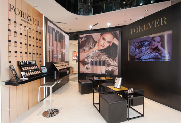为了让更多人能找到专属自己的超完美底妆CP,迪奥特别于2/14至3/3在新光三越信义新天地A11馆开设了全台首间迪奥超完美快闪店。全店以高质感的黑金色系打造,并以多重镜面诠释出多样化的肤色质地,并结合了以迪奥高级订制时装秀为灵感的经典藤格纹摇滚钉制图案作为店装整体设计灵感。