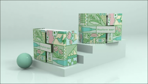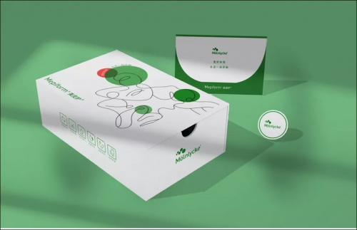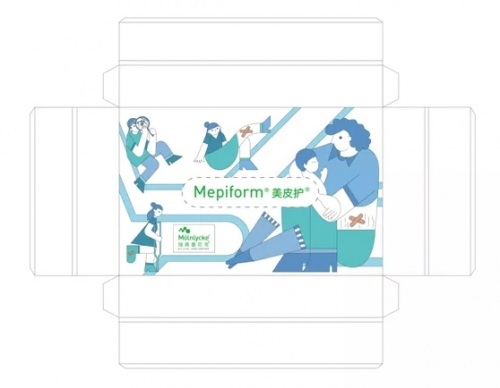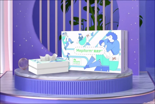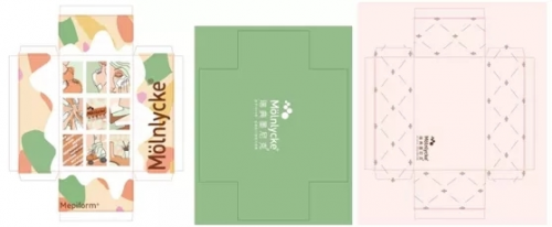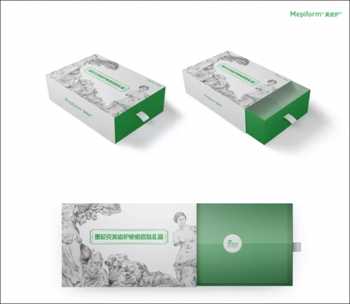 该设计作品运用4个扁平化的人物,准确传达出美皮护产品的应用场景及故事寓意。蓝绿色调符合目标用户群体特征与墨尼克品牌定位。扣开中心logo处变为纸巾盒的循环使用理念做到了绿色设计,环保并兼具收藏价值,具有较强应用性。
